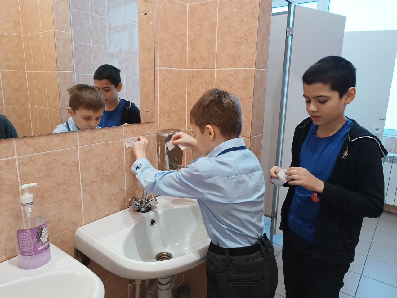 В младшем корпусе ГБОУ гимназия № 528 состоялась акция «На страже чистоты», которую провели учащиеся волонтерского отряда «Твори добро» и педагог-организатор Ворошилова Н. И. Учащиеся приготовили наклейки с призывом соблюдать чистоту и наклеили их в туалетных комнатах.