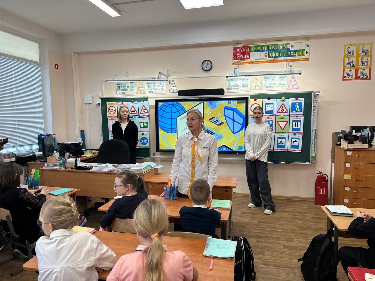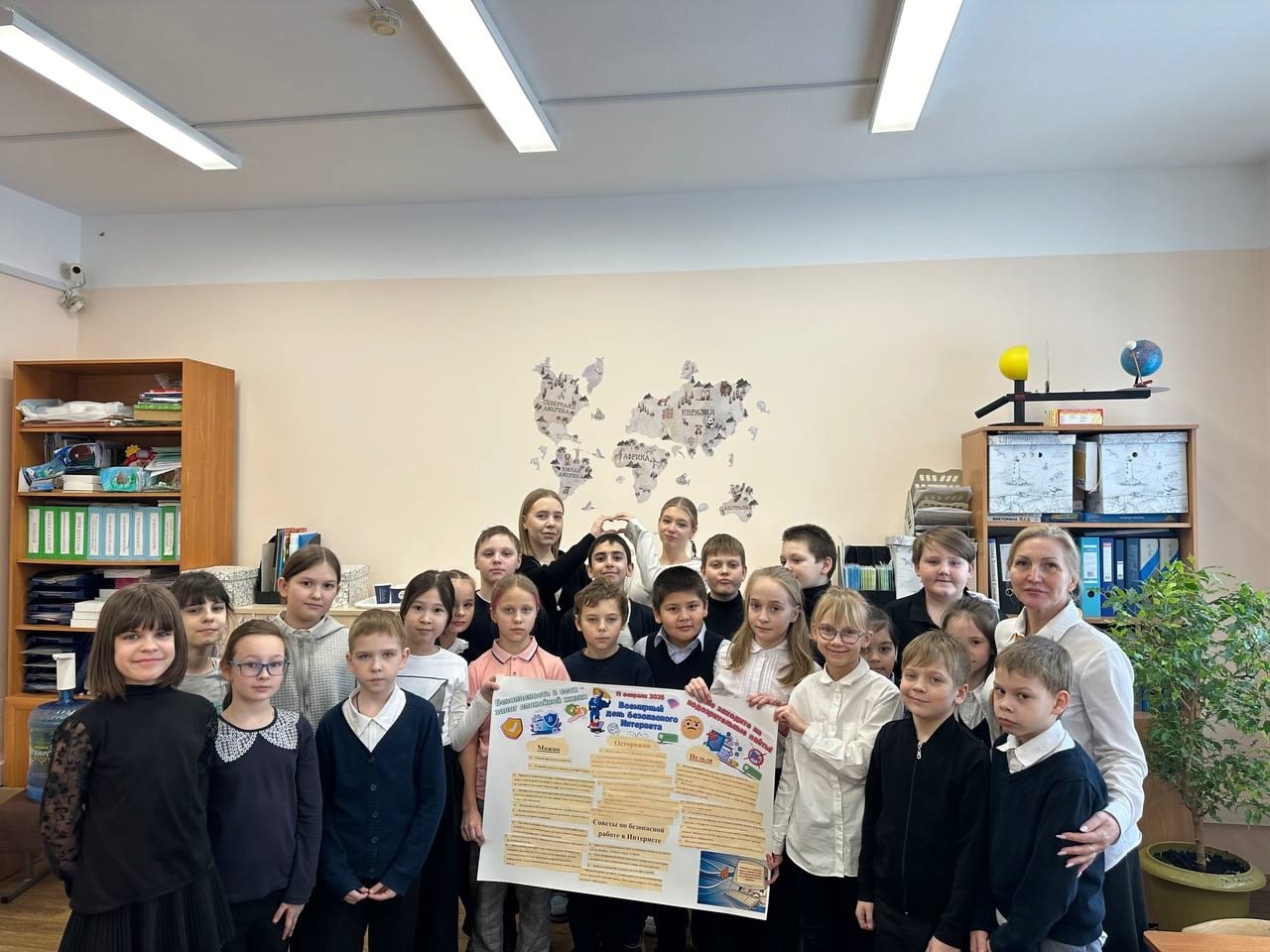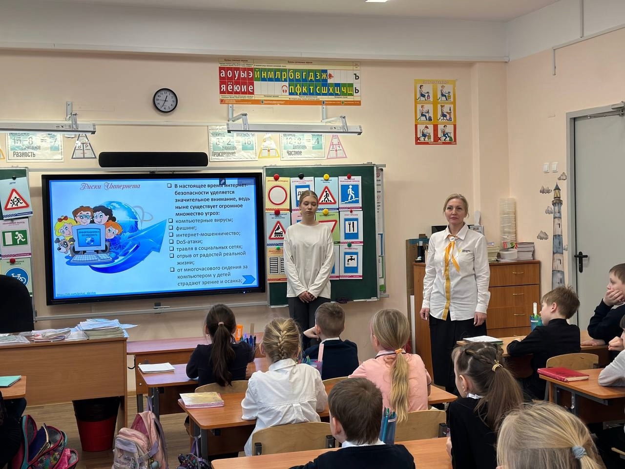Советник директора по воспитанию и куратор добровольческого отряда Максимова М.В. вместе с участниками отряда подготовили и провели для обучающихся 3 Е класса беседу и интерактивную викторину, посвящённую безопасности в интернет-пространстве. Ребята повторили все правила безопасного использования интернета. Они изготовили и разместили в общей рекреации информационный плакат, содержащий простые. но эффективные советы. Теперь любой обучающийся в начальной школе используя советы может быть защищён.
