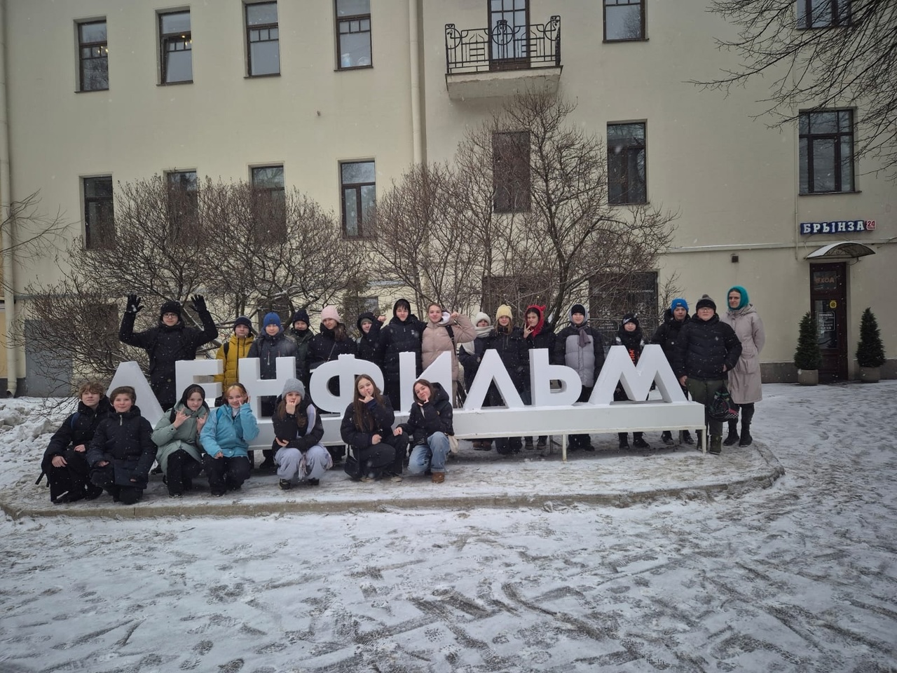 12 февраля обучающиеся 7б посетили настоящие съёмочные цеха киностудии «Ленфильм», увидели строящиеся декорации к новому фильму и побывали в кресле настоящего художника по гриму.