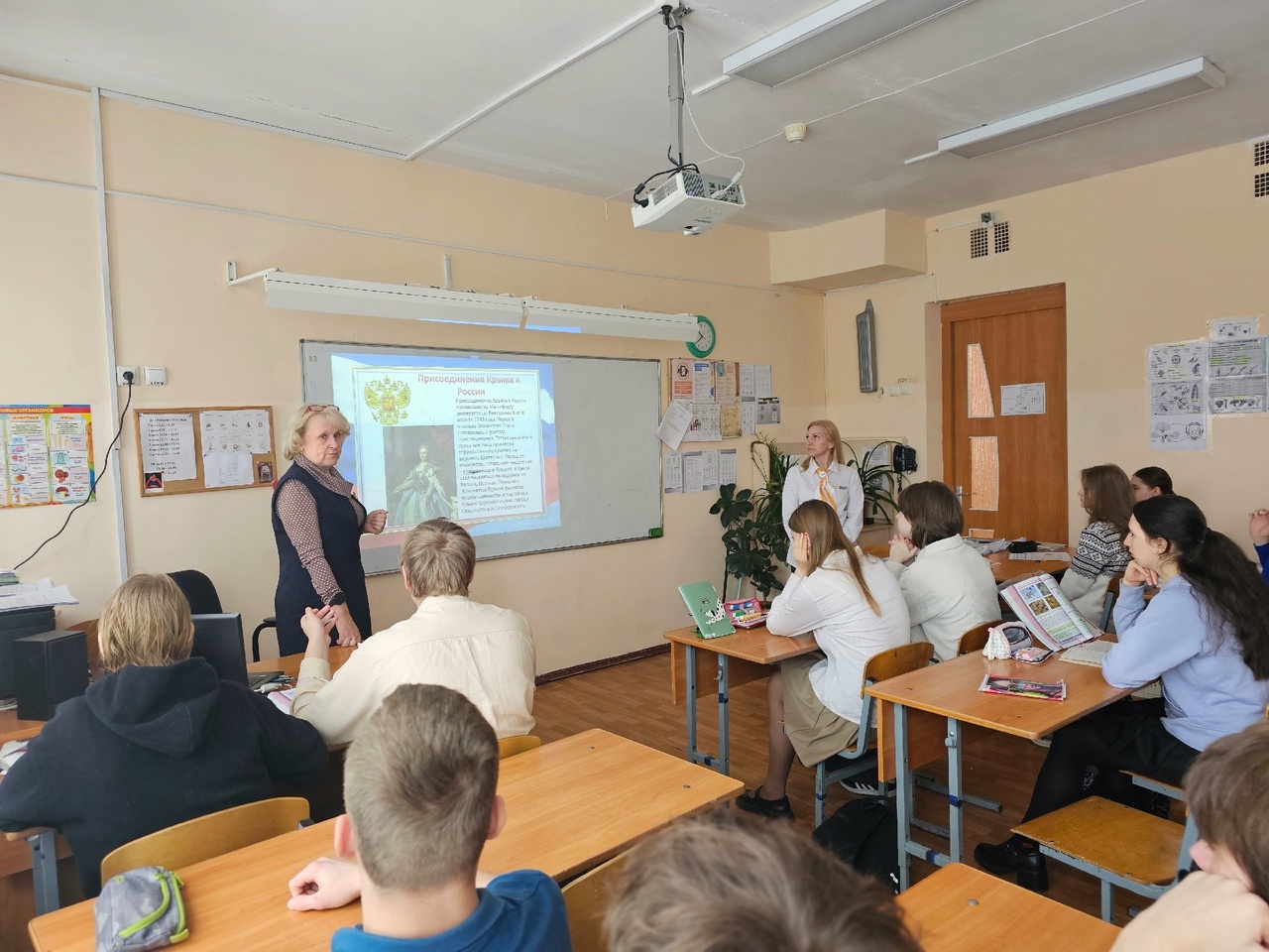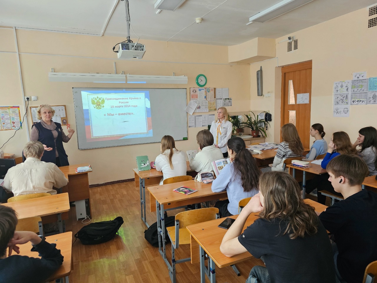 В важную в истории Российского государства дату- воссоединение Крыма с Россией — для гимназистов 8 класса был организован и проведён исторический час «Крымская весна». Ребята проявили интерес, задавали вопросы, пытались найти вместе со взрослыми ответы.
