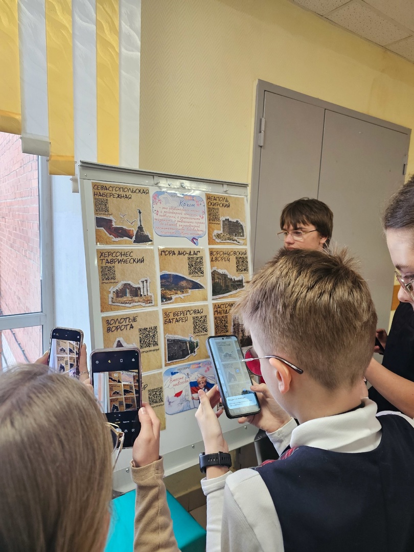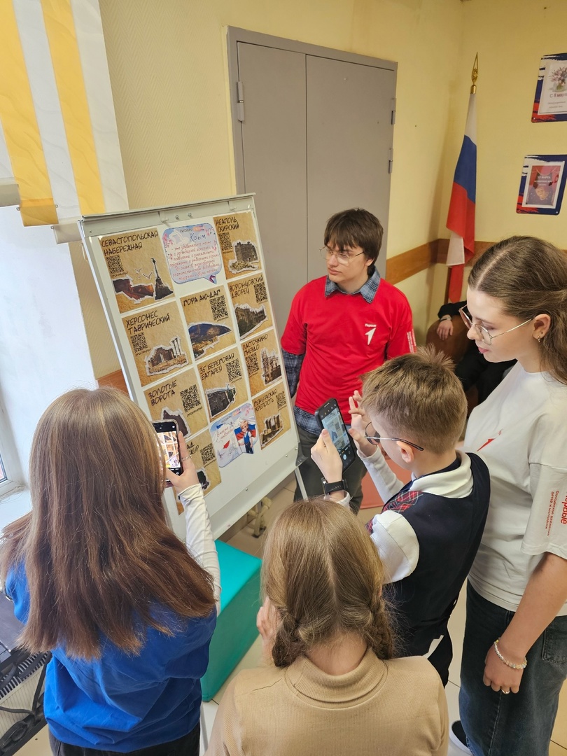 Традиционно 18 марта во всех городах Республики, в Севастополе и во многих российских городах проходит множество торжественных и праздничных мероприятий. В этот день, в рамках Всероссийской акции «Краски Крыма», активистами «Движения первых» вместе с куратором «Первых» и советником директора по воспитанию Максимовой М.В. была оформлена онлайн-экскурсия «История одного полуострова», где каждый обучающийся может самостоятельно ознакомиться с историей достопримечательностей полуострова, пройдя по QR-коду на плакатах, которые размещены на стендах гимназии в открытом доступе. В Центре детских инициатив, при помощи технических устройств, демонстрировались видеоролики с достопримечательностями Крыма.