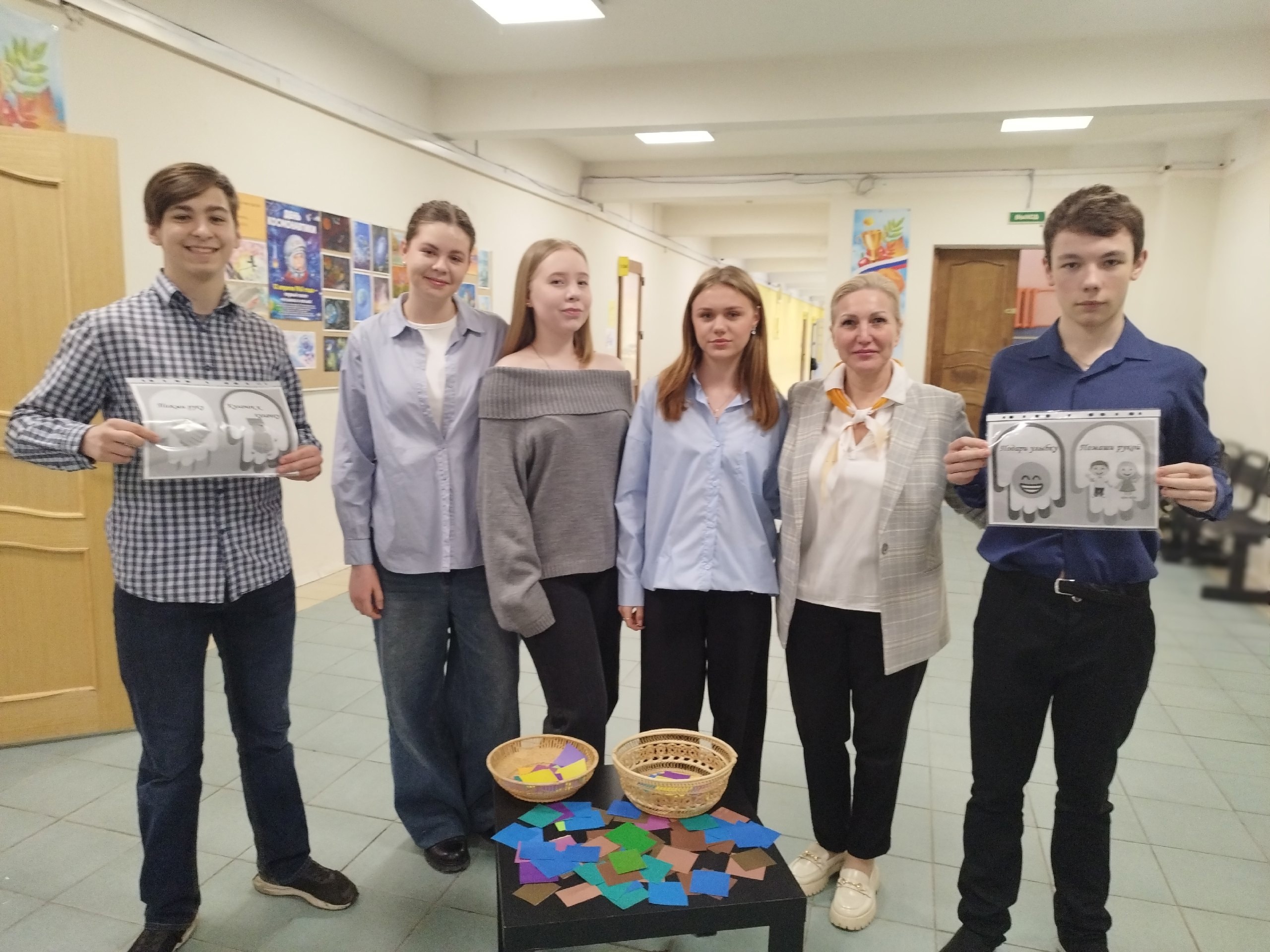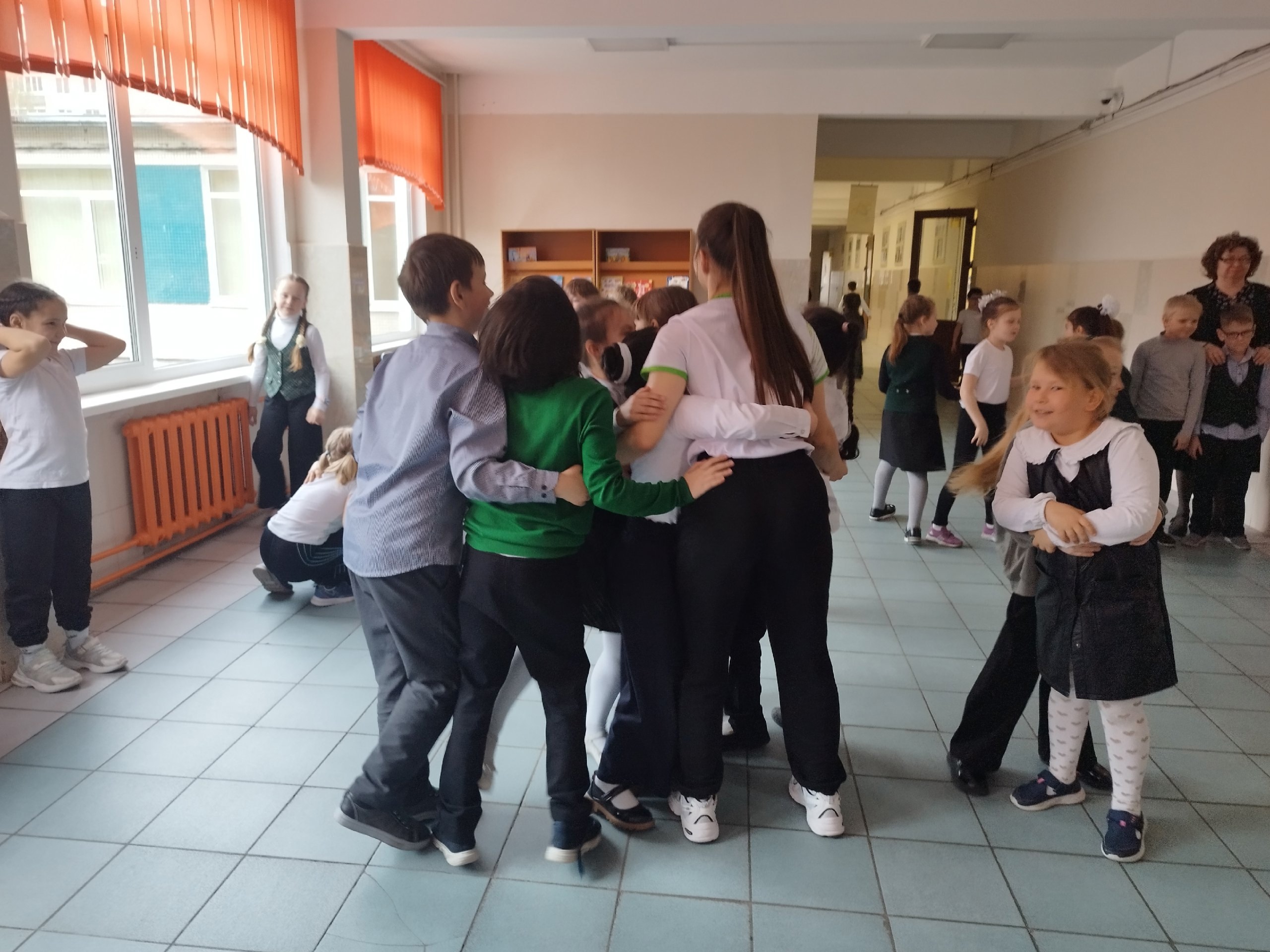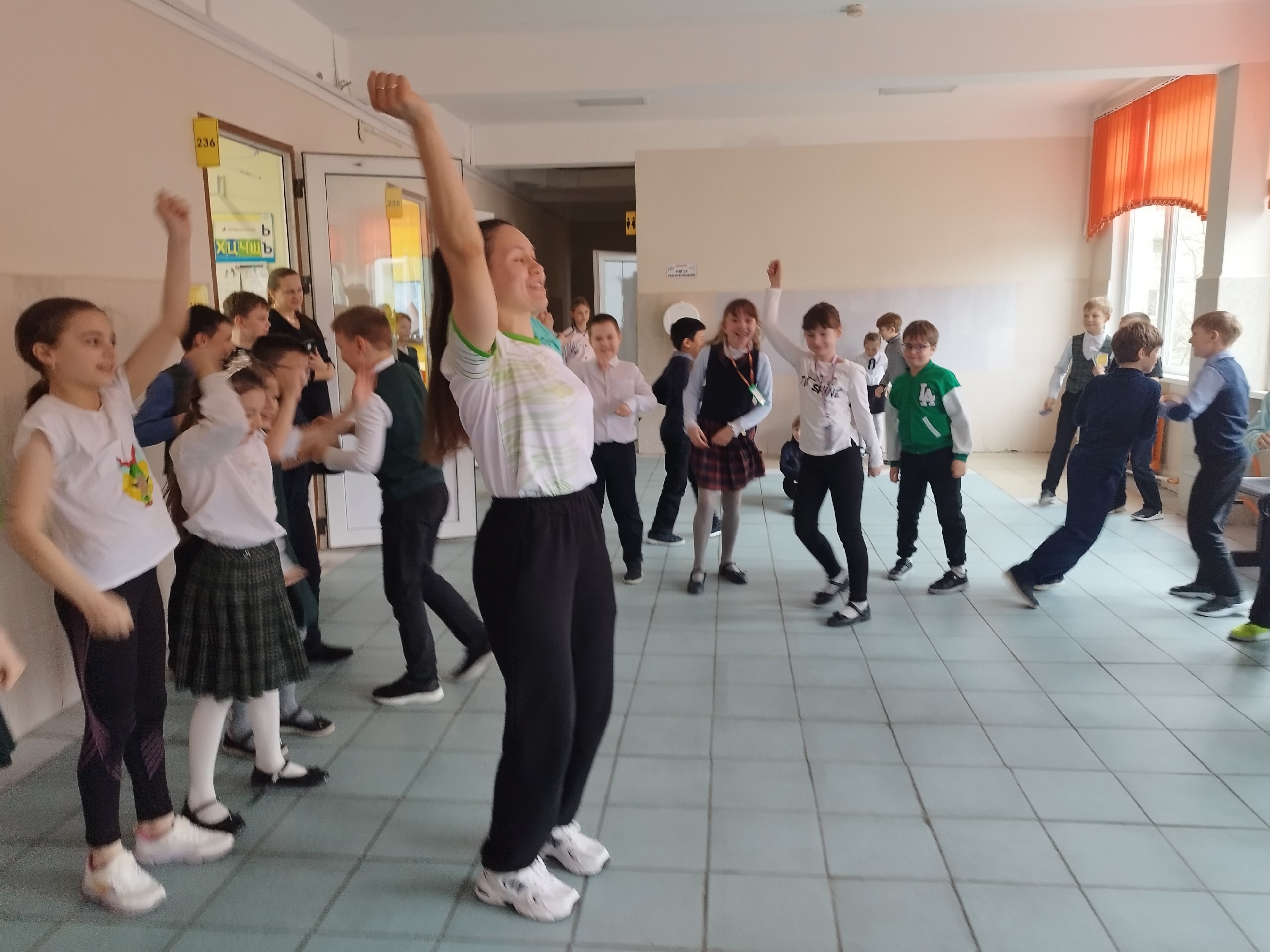 Ярким завершением стал тематический флешмоб «Я, ты, он, она…», который подготовили и провели участники добровольческого отряда, активисты «Движения первых» вместе с советником директора по воспитанию Максимовой М.В.