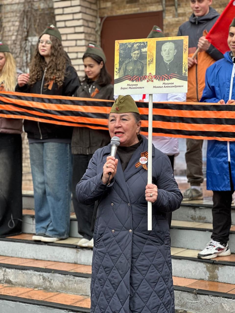 Сегодня, 7 мая 2025 года обучающиеся 9в класса, активисты «Движения первых» и участники добровольческого отряда совместно с классным руководителем, заведующим школьным музеем Фабриковой И.В., советником директора по воспитанию Максимовой М.В., куратором первичного отделения «Движения первых» Коровкиной В.В. подготовили и помогли провести Парад Победы, посвященный 80-летию памятного и знаменательного дня. Особое, торжественно-трогательное место в параде занял «Бессмертный полк», в котором дети пронесли портреты своих прапрадедов, участников Великой Отечественной войны.