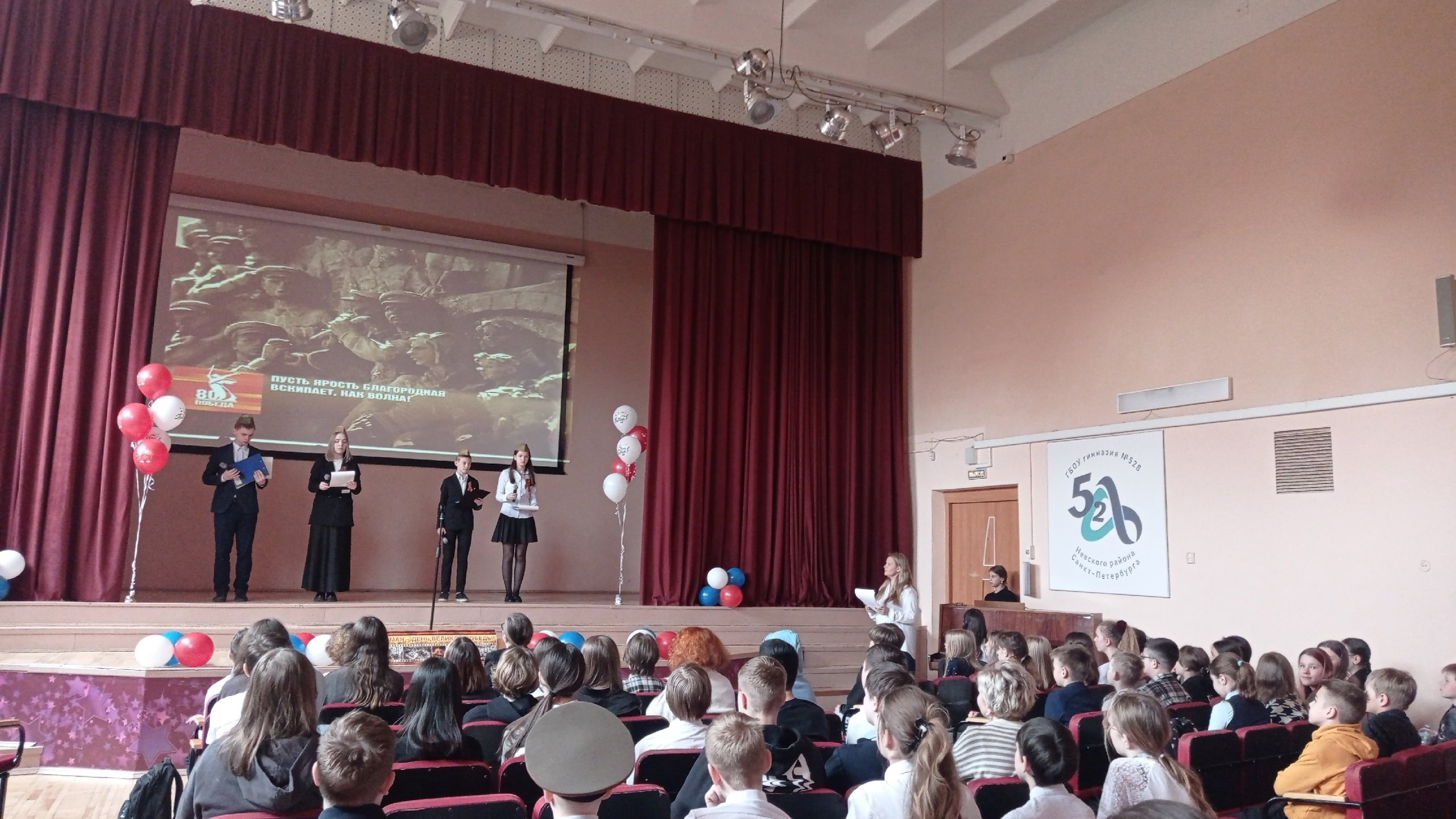 6 мая в ГБОУ гимназии 528 для обучающихся 5 и 7 классов прошла литературно-музыкальная композиция «Памяти павших будьте достойны», посвященная 80-летию Победы.