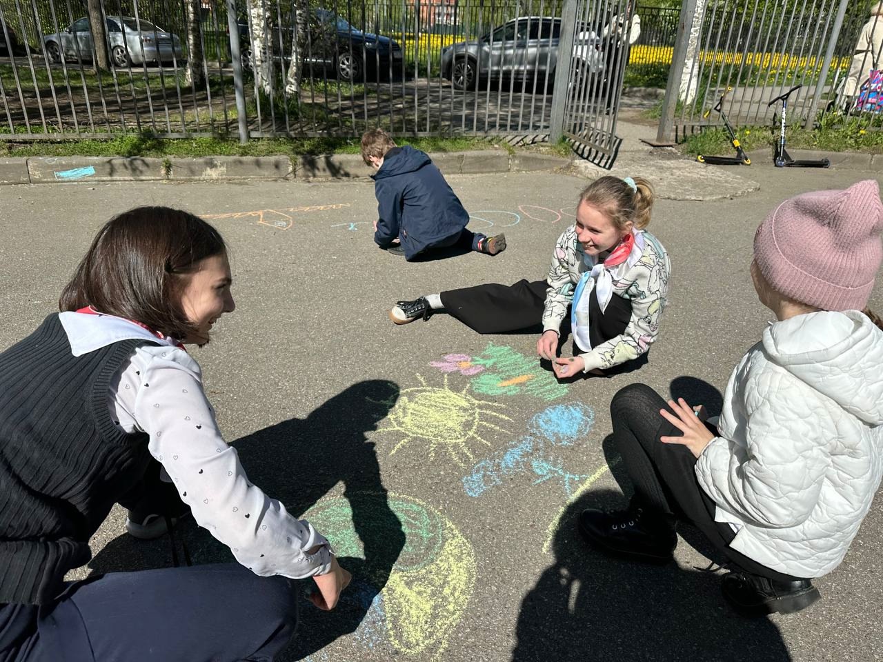 В последние майские учебные дни активисты «Движения первых» с наставниками «Орлят России» и советником директора по воспитанию Максимовой М.В. организовали интерактивную прогулку для обучающихся 1 класса, где ребята вместе рисовали мелками на асфальте яркие, солнечные рисунки. Закончилась весёлая прогулка зажигательной музыкальной игрой-ускорялочкой. Дети – наше будущее, и поэтому особенно важно обеспечить им благоприятные условия для роста, развития и самовыражения. Дети – наше самое драгоценное сокровище, и мы обязаны заботиться о них и защищать их права в любое время и в любом месте.