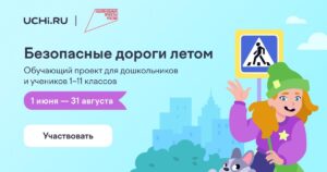 В каждой миссии участники помогают героям добраться до цели, соблюдая правила. А если допустят ошибку — увидят её последствия и смогут всё исправитью. Пройти задания можно до 31 августа на сайте leto-dorogi.uchi.ru .Все участники получат сертификаты и приятные онлайн-призы! Лето — время свободы, но нельзя забывать про безопасность. Подключайтесь и проведите каникулы с пользой! Организаторы проекта «Безопасные дороги летом» – АНО «Национальные приоритеты» ГУОБДД МВД России, Учи.рупри поддержке национального проекта «Инфраструктура для жизни». Партнер проекта – общероссийская общественная детско-юношеская организация по пропаганде безопасности дорожного движения «Юные инспекторы движения».