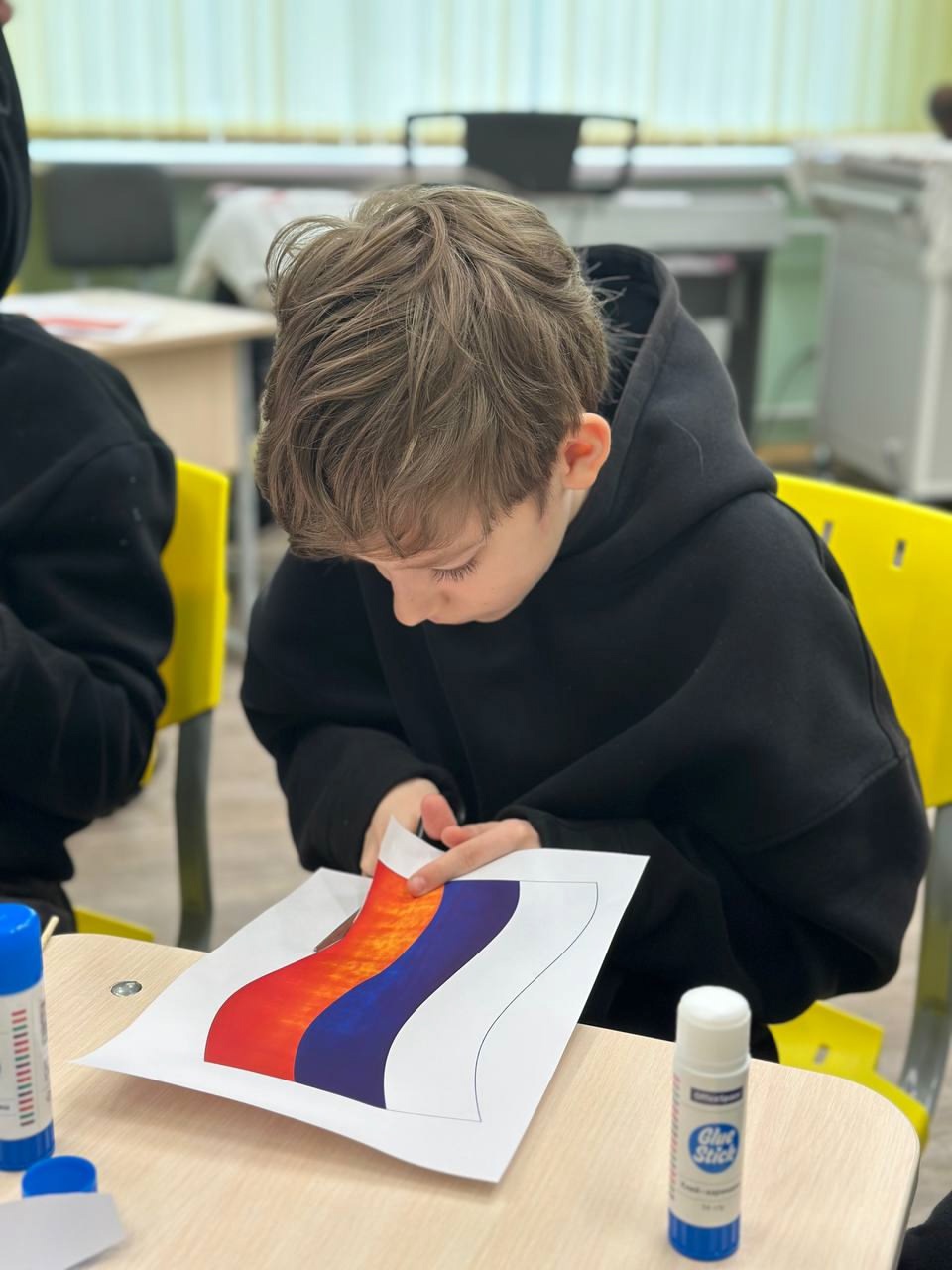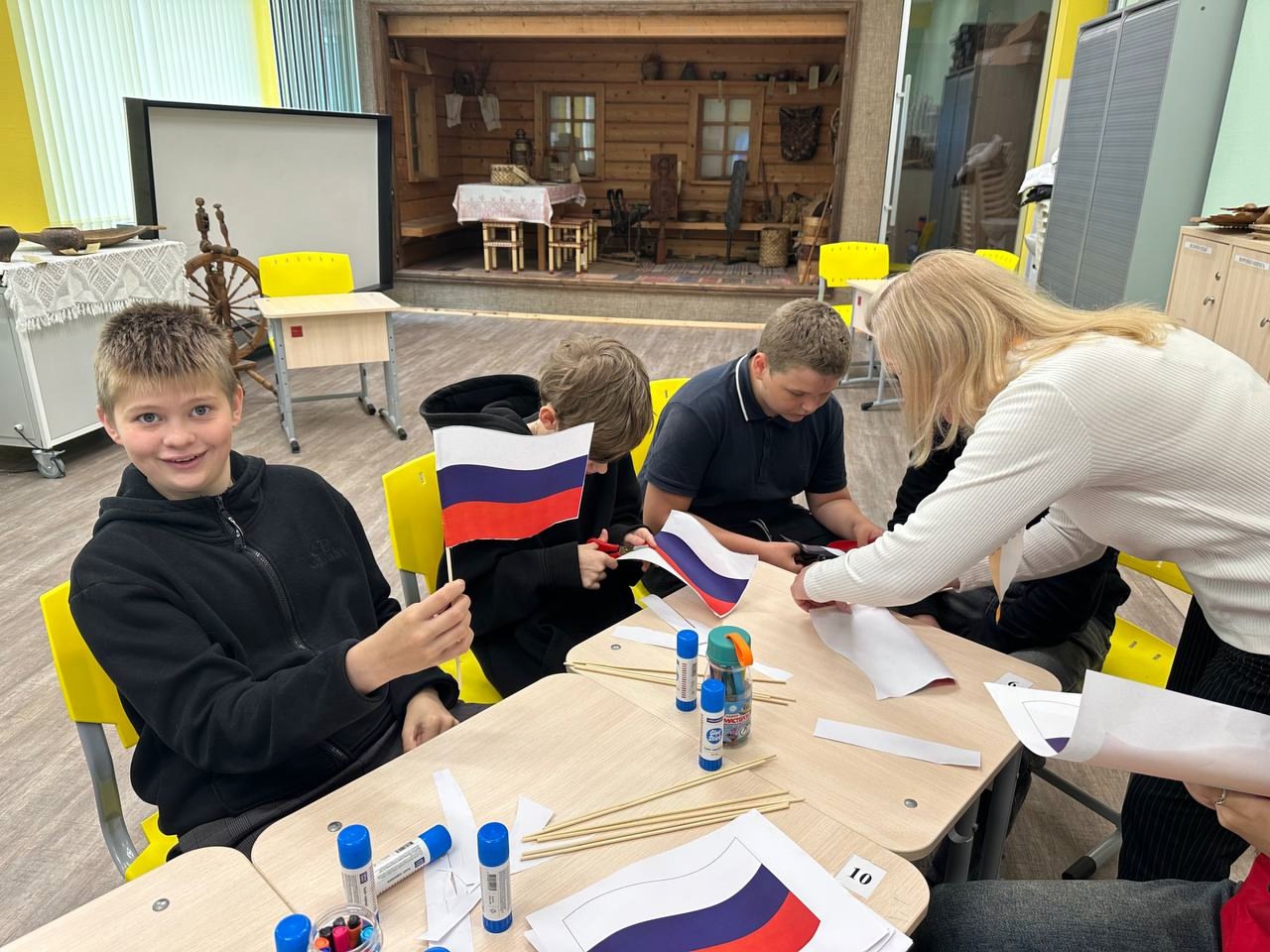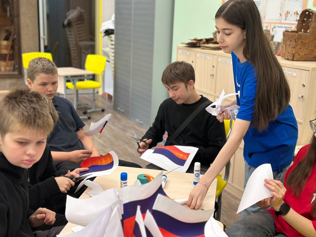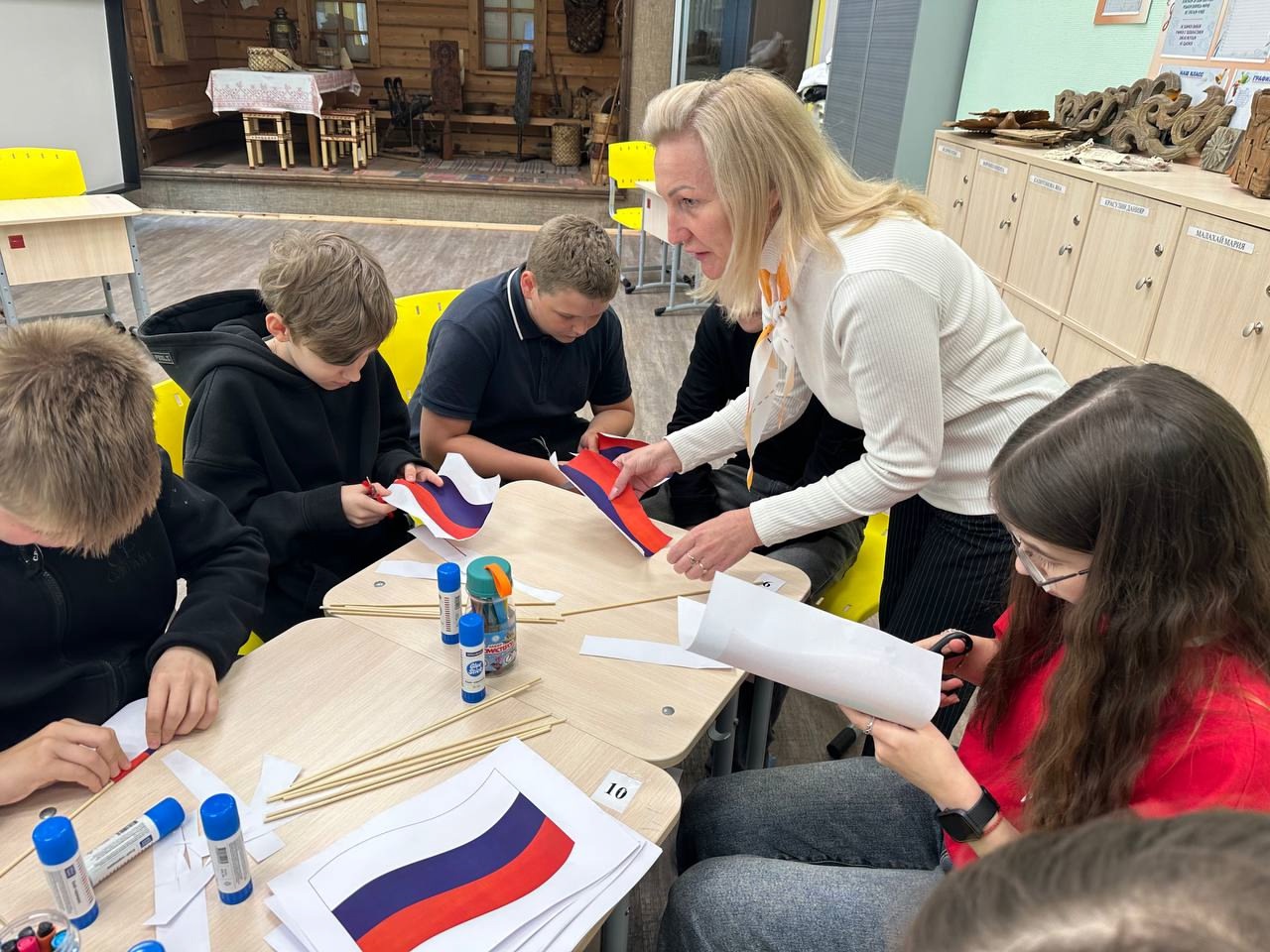 В преддверии праздника активисты «Движения первых» под руководством советника директора по воспитанию Максимовой М.В. провели мастер-класс «Российский триколор – символ нашей Родины» для обучающихся 6 класса, в ходе которого познакомили ребят с историей российского флага, с символикой выбранных для него цветов.