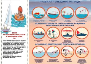 Если вы собрались купаться в море или реке, помните: не ныряйте в незнакомых местах, не заплывайте за буйки, не заходите на глубокое место, не подплывайте к лодкам и судам, не заплывайте далеко на надувных матрасах и кругах, не играйте на воде так, чтобы удерживать «противника» под водой, и не заходите в воду во время шторма.