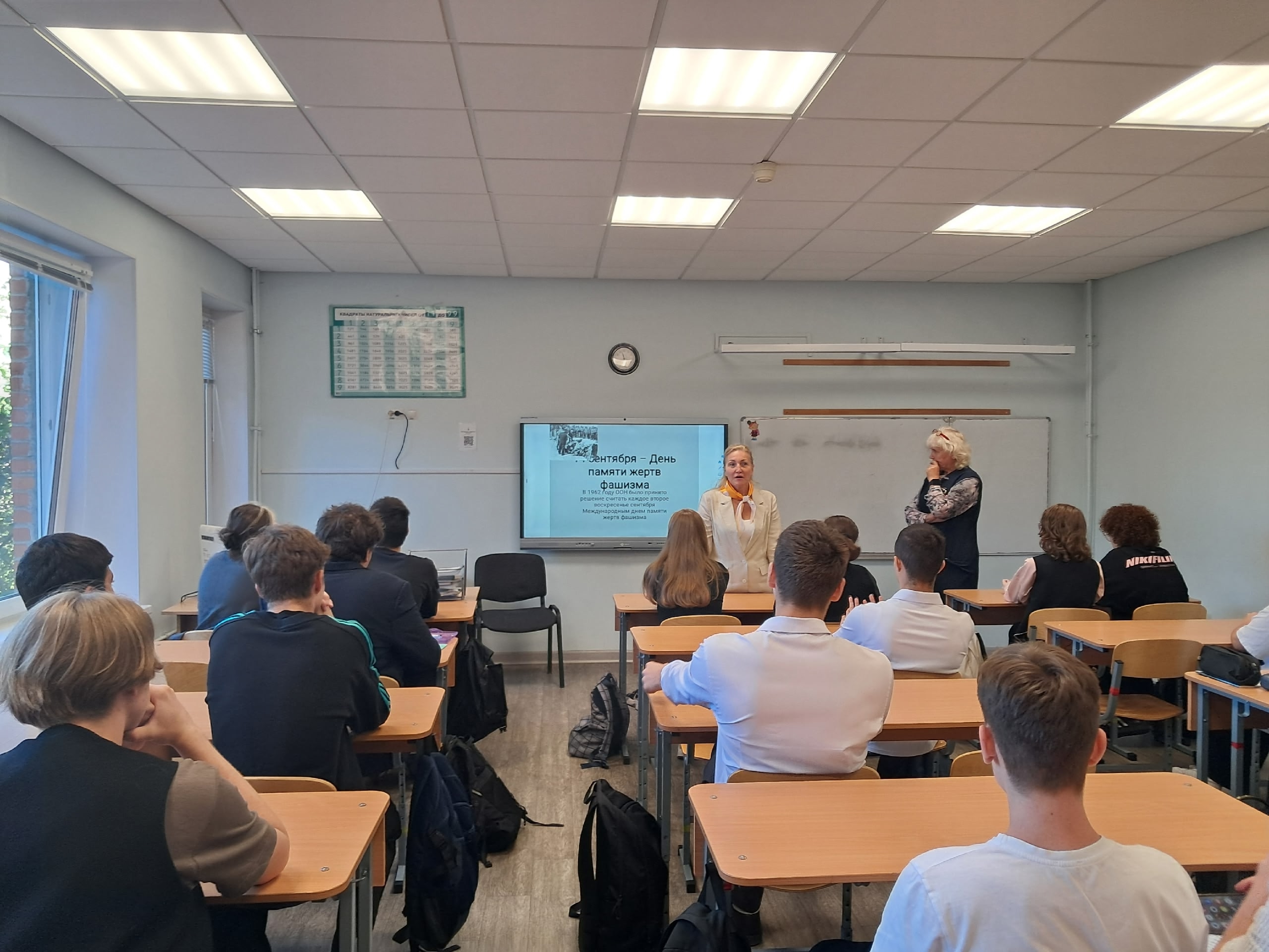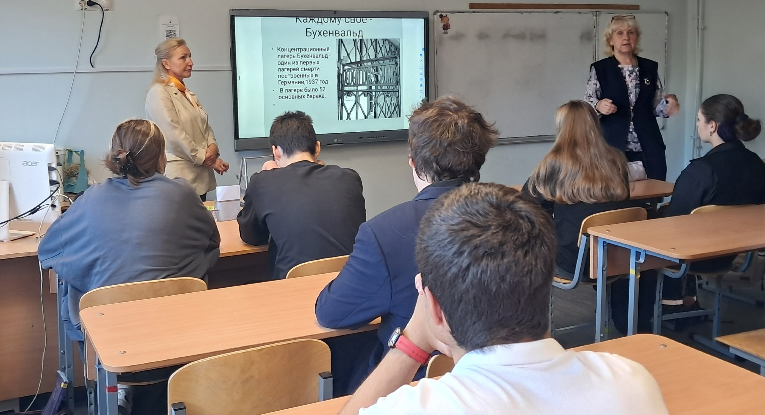 В честь этого дня советником директора по воспитанию Максимовой М.В. и заведующим школьным музеем Фабриковой И.В. для обучающихся 11 класса был проведен тематический урок, в ходе которого ведущими еще раз обращено внимание на важные базовые ценности человека, как жизнь, достоинство, права и свободы человека, историческая память.