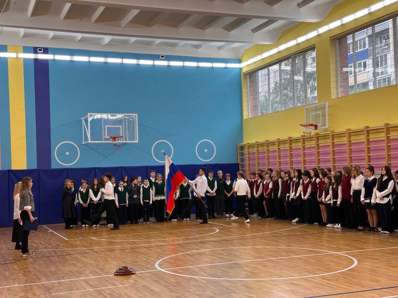 Учебная неделя традиционно началась с церемонии выноса Государственного флага Российской Федерации.