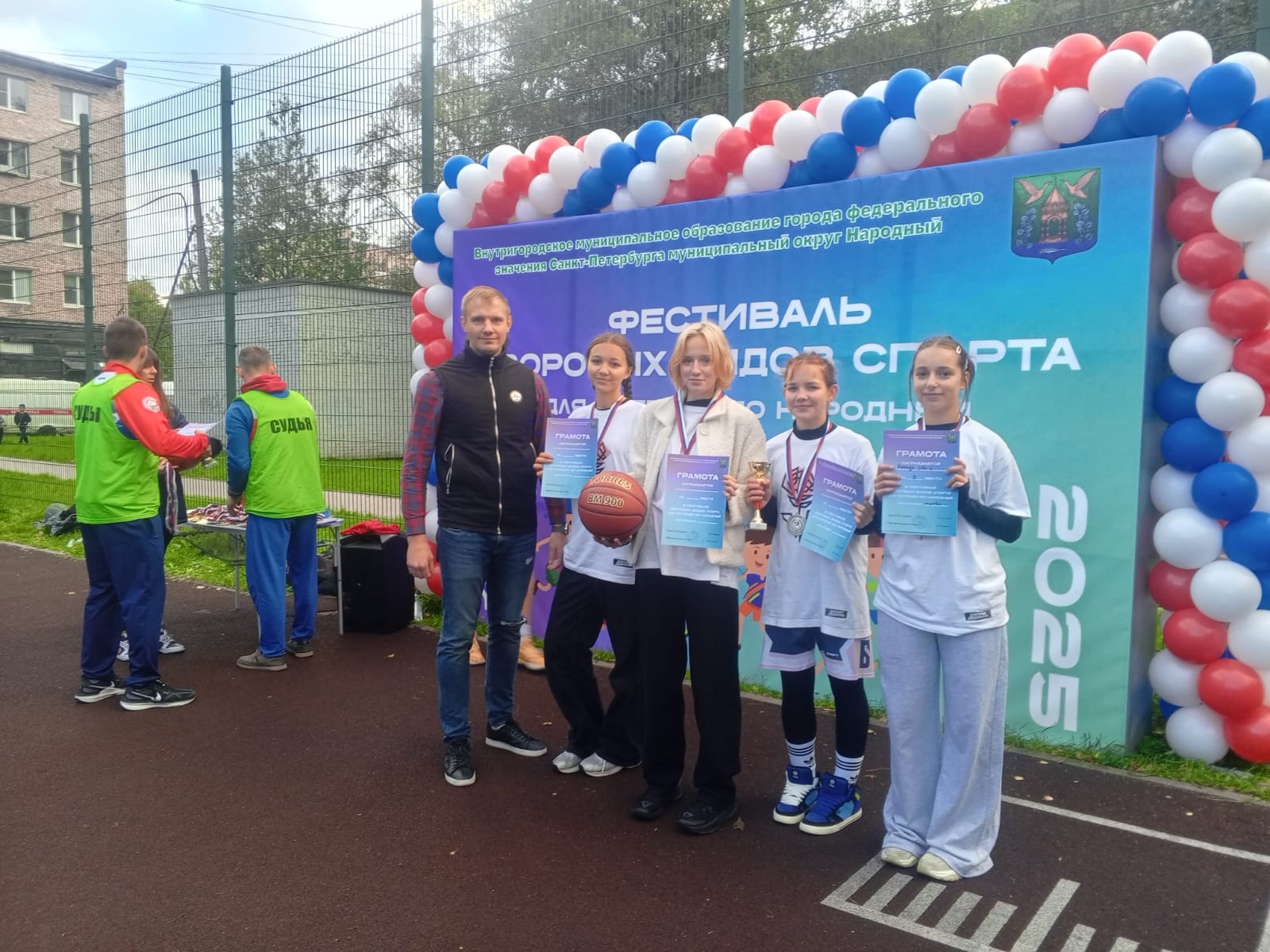 25 сентября наши баскетболистки на Фестивале дворовых видов спорта заняли 2 и 3 место. Девочки играли в смешанном формате (мальчики + девочки) и в упорной борьбе смогли завоевать призовые награды. СПЕЦПРИЗ — баскетбольные мячи.