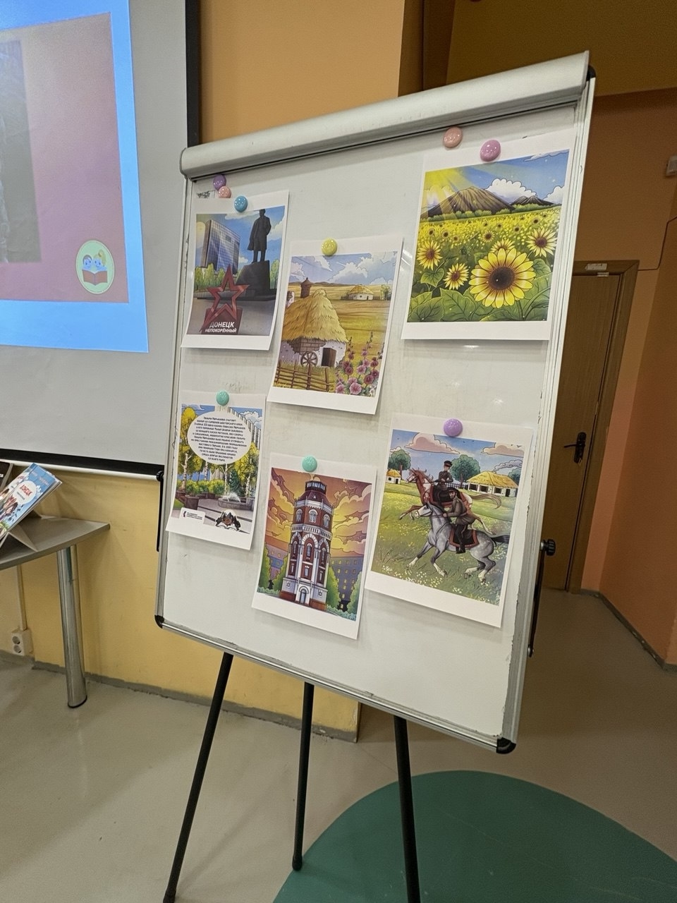 Дата была выбрана не случайно, ведь 30 сентября в нашей стране отмечают День воссоединения Донецкой Народной Республики, Луганской Народной Республики, Запорожской области и Херсонской области с Российской Федерацией. Главный библиограф Назаровская Ярослава Геннадьевна рассказала собравшимся о истории Донецкой республики. Особенно интересно было это услышать от человека, который родился и жил в Донецке, а Ярослава Геннадьевна родом из этих мест. В ходе встречи — рассказа ребята узнали о Донбассе – угольном, шахтерском крае с многовековой историей, с бескрайними степями, с курганами, покрытыми тайнами веков, о важном для обороны и торговли Азовском море. Находясь на переднем крае, Донецкая республика не раз встречала врагов, но никогда не вставала на колени перед своими обидчиками, и сейчас на этой земле не утихают военные действия.