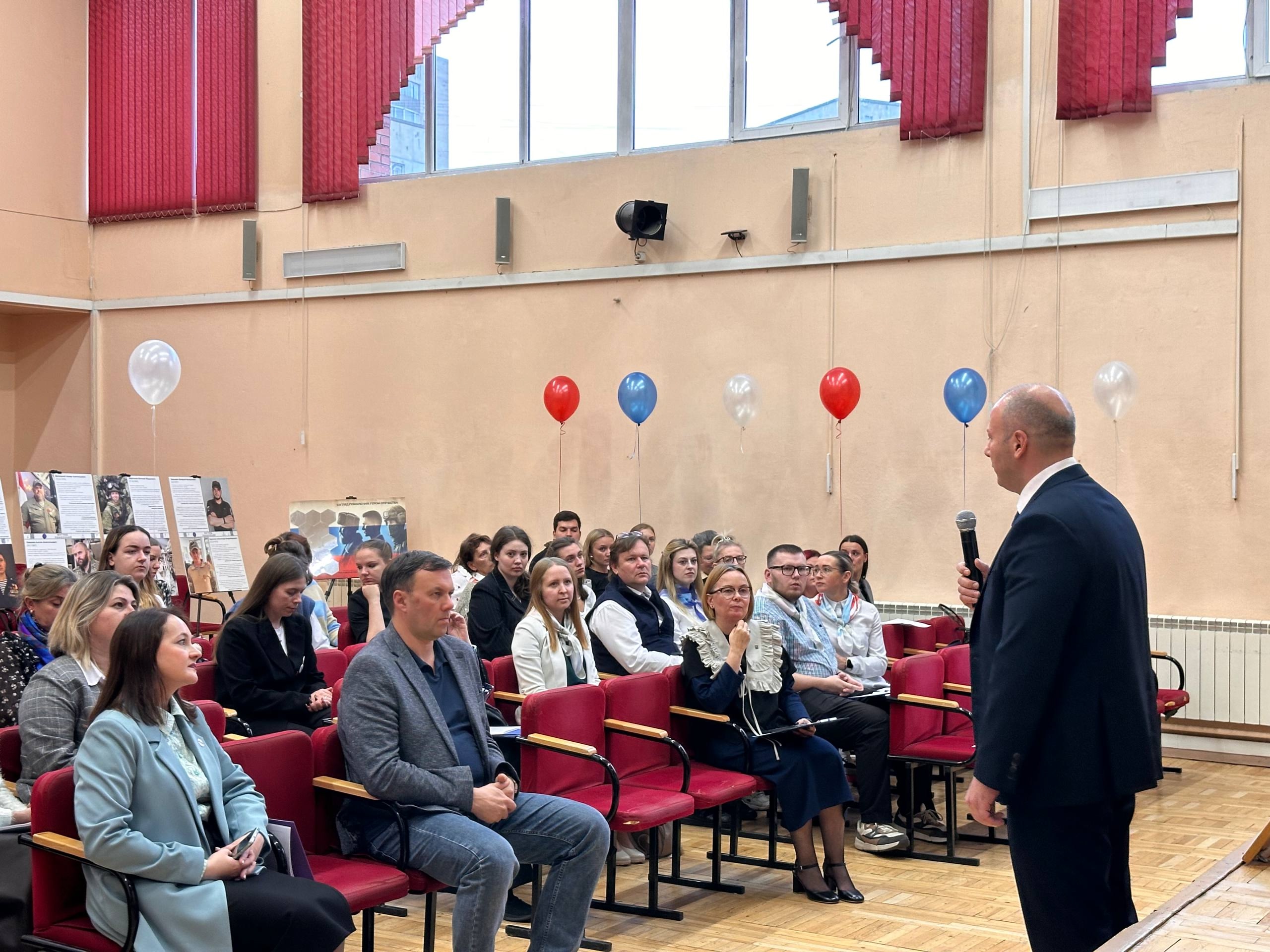 В нашей гимназии во всех 27 классах увлекательно, интересно и успешно реализуется данная программа благодаря Алексеенко Юлии Гавриловне, заместителю директора по УВР, Кобелевой Екатерине Александровне, куратору программы в нашей гимназии, Максимовой Марине Вячеславовне, советнику директора по воспитанию совместно со старшеклассниками-наставниками «Орлят России». Благодарим ГБУ ДО ЦГПВДиМ «Взлет» за доверие принять кураторов всех общеобразовательных учреждений нашего района! Важным моментом мероприятия стала церемония открытия выставки «Взгляд поколений: Герои Отечества» от региональной общественной организации по взаимодействию и поддержке русскоязычного населения «Соотечественники» при поддержке ВМО МО «Оккервиль».