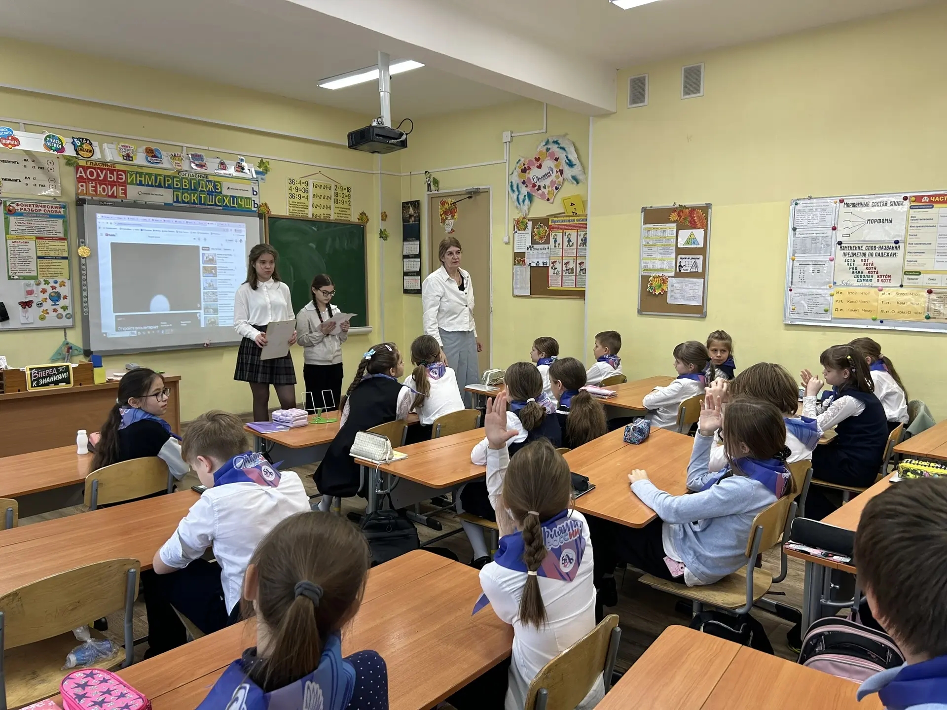 Сегодня, 14 ноября 2025 года, ученицы 7«К» класса — Побега Полина и Савельева Диана — провели для четвероклассников 4«Д» увлекательный «Урок дружбы» в рамках Всероссийской программы «Киноуроки в школе России».