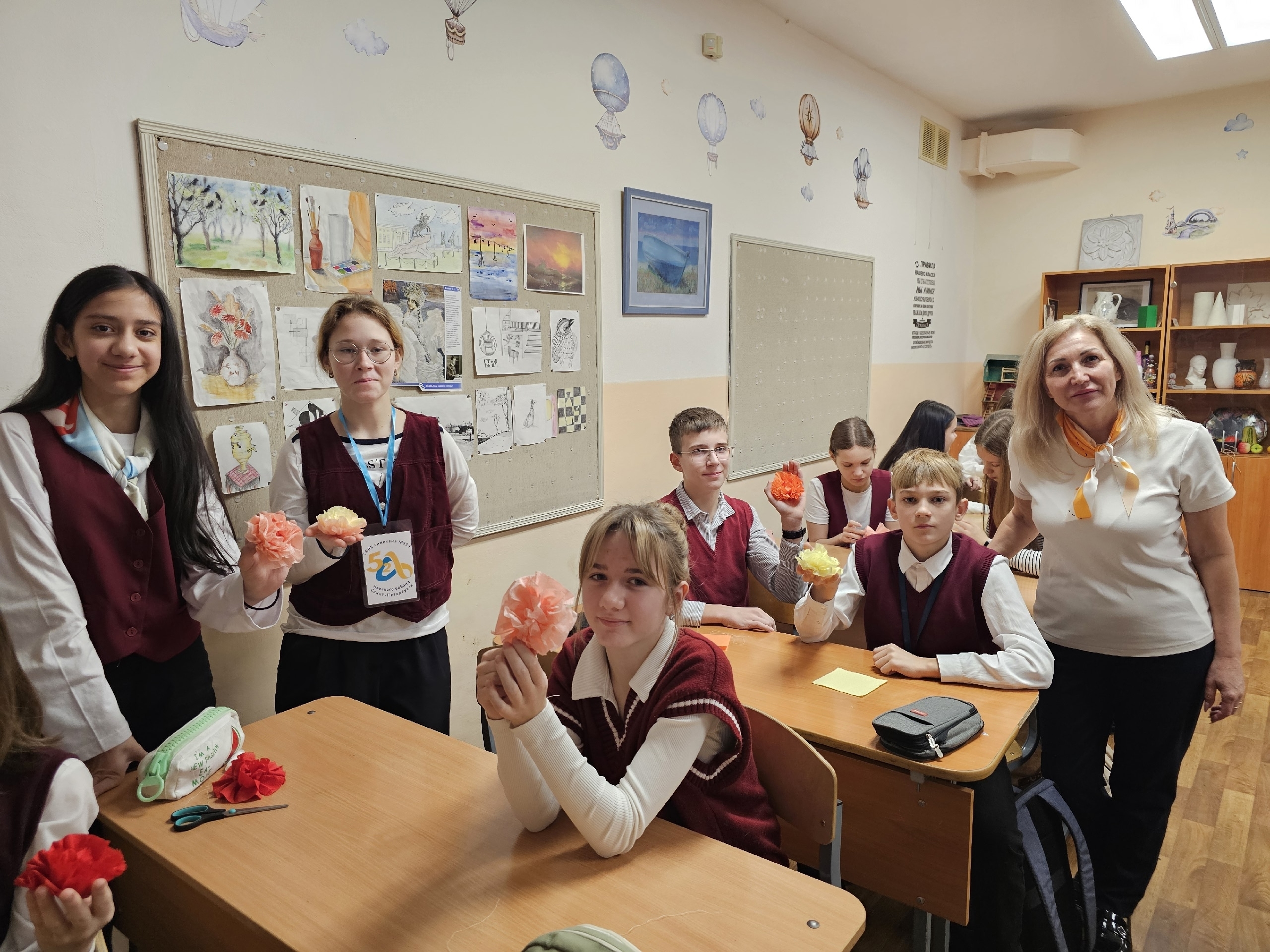 В преддверии праздника наставник-старшеклассник «Орлят России» Гулиева Нурай и участник добровольческого отряда Матешевская Алиса под руководством советника директора по воспитанию Максимовой М.В. подготовили и провели мастер-класс для обучающихся 7 классов по изготовлению декора для праздничных открыток, который передали в детский сад для украшения поздравительных открыток, , которые дошкольники подарят своим мамам. Желаем всем настоящим и будущим мамам много прекрасных дней без бед и болезней, терпения, много улыбок, счастья и бесконечной любви!