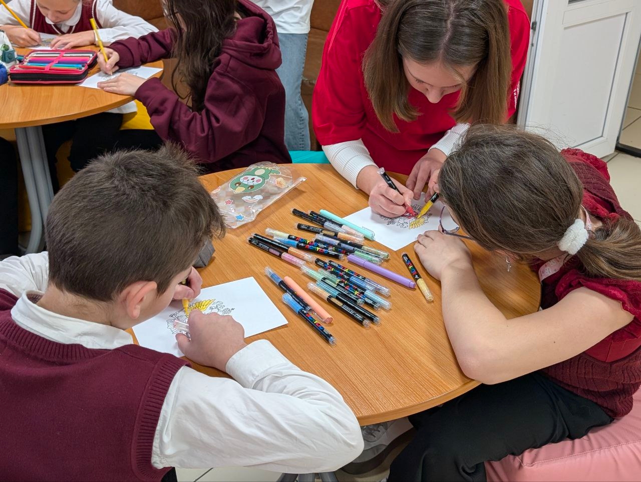 В завершении мероприятия ребята приняли участие в игре «История Российского герба» и выполнили творческое задание – закладку с изображением этого символа государства, которую разместили в своем дневнике.
