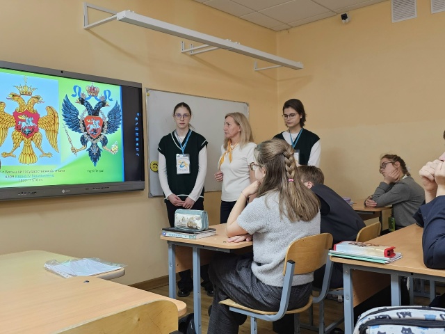 К этому дню участники добровольческого отряда и активисты «Движения первых» под руководством советника директора по воспитанию Максимовой М.В. и учителя истории Фабриковой И.В. подготовили и провели для обучающихся 5 и 6 классов тематический урок.