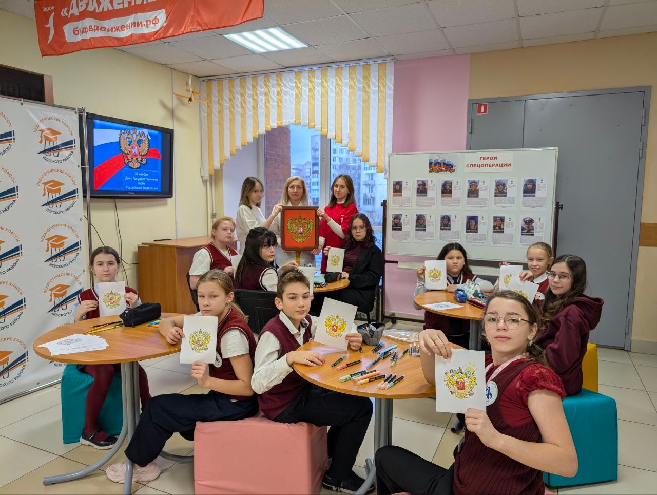 В ходе урока ребята узнали, что у каждой страны есть особая атрибутика, которая отличает её от других государств, подчеркивает независимость и историческую самобытность нации. Она называется державной символикой и включает в себя гимн, флаг и официальный знак.
