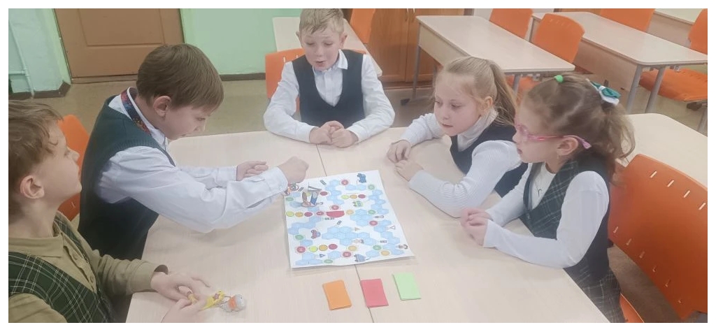 с учащимися второго класса. В ходе игры ребята вместе выполняли задания с карточек, разгадывали загадки и повторили правила поведения при гололед.