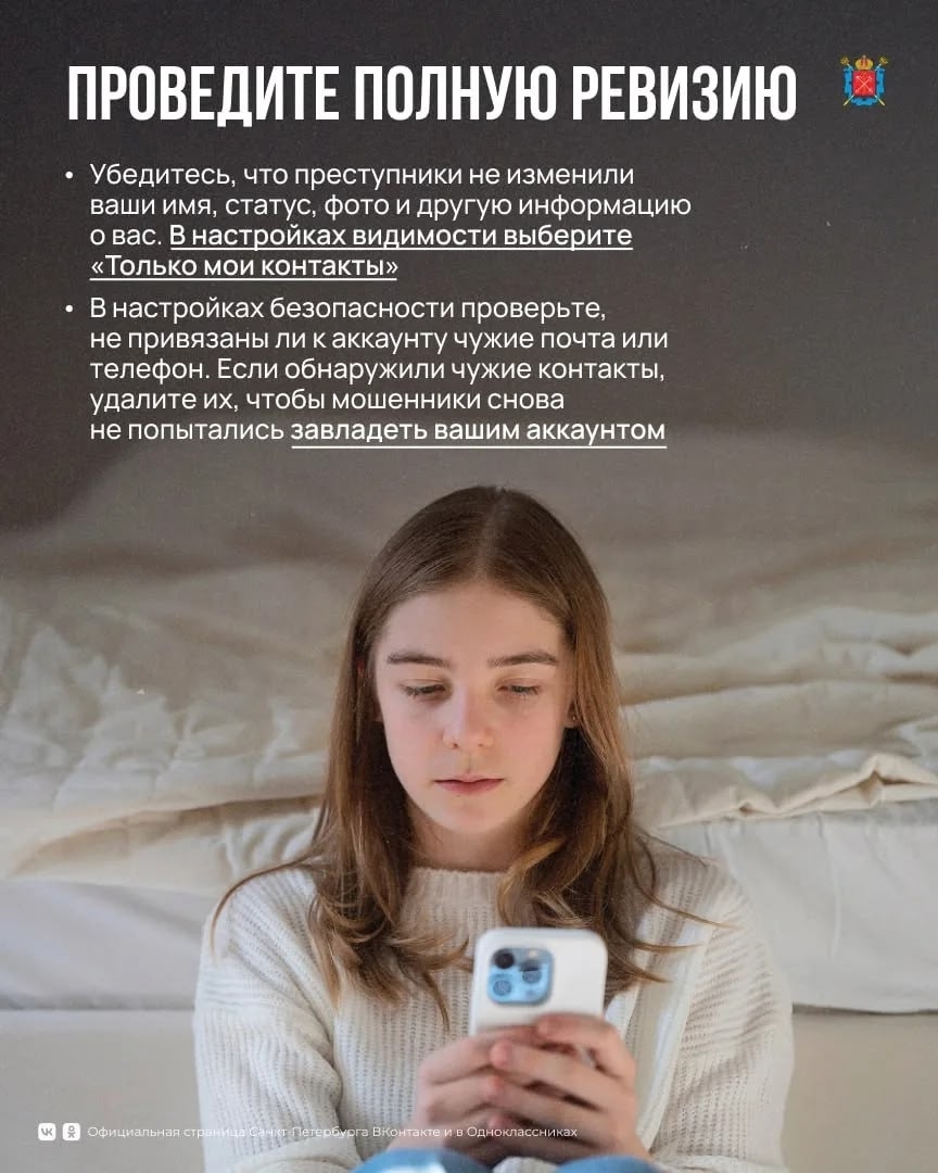 Если вы совершили ошибку и сдали свой аккаунт незнакомцам в аренду — действуйте по инструкции. Верните контроль над своим профилем в соцсетях и обратитесь в полицию. Приложите доказательства и укажите в заявлении: как с вами связались, что предлагали и какие действия вы совершили. Это поможет избежать уголовной ответственности и свести к минимуму риск административной.