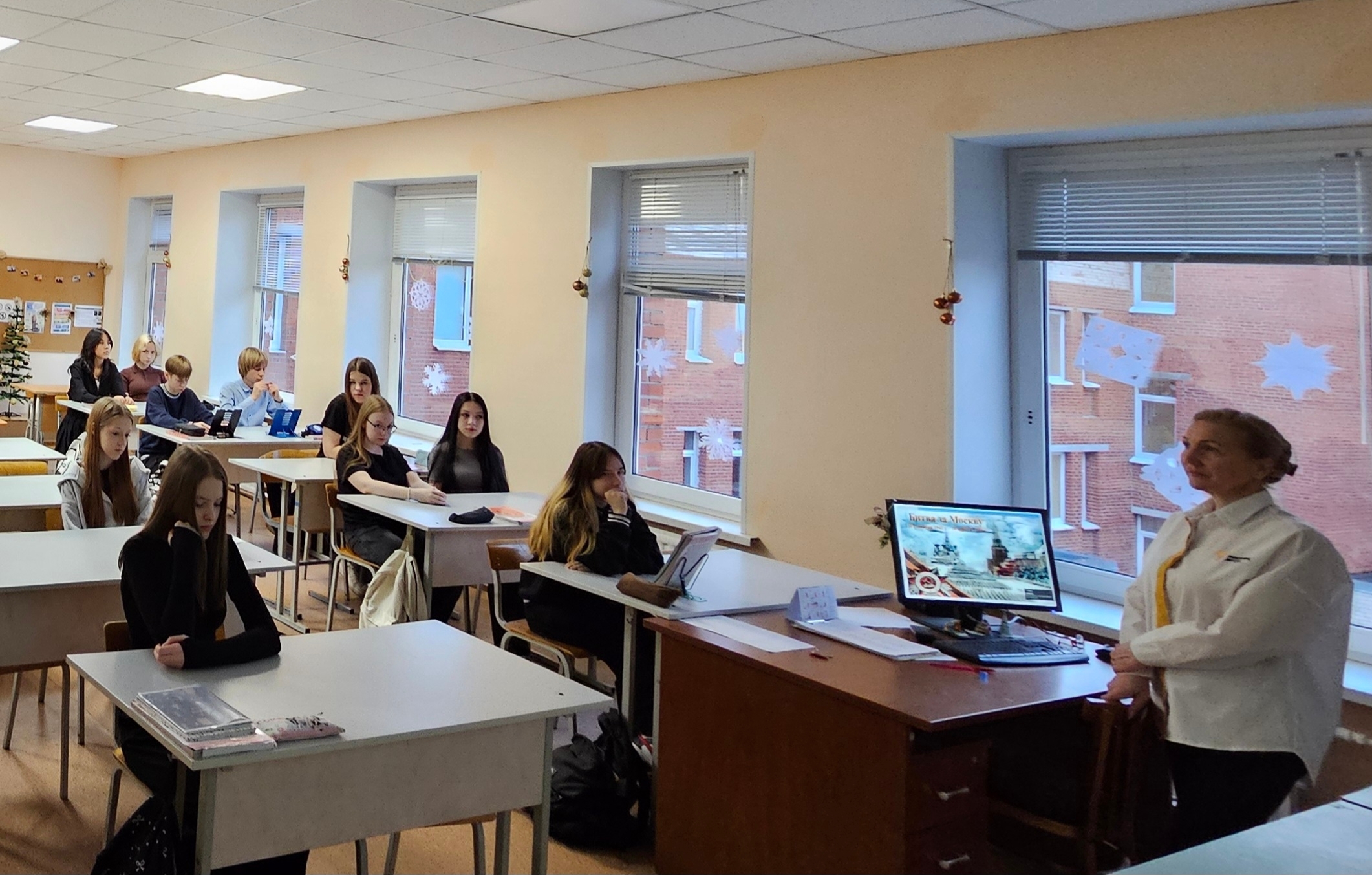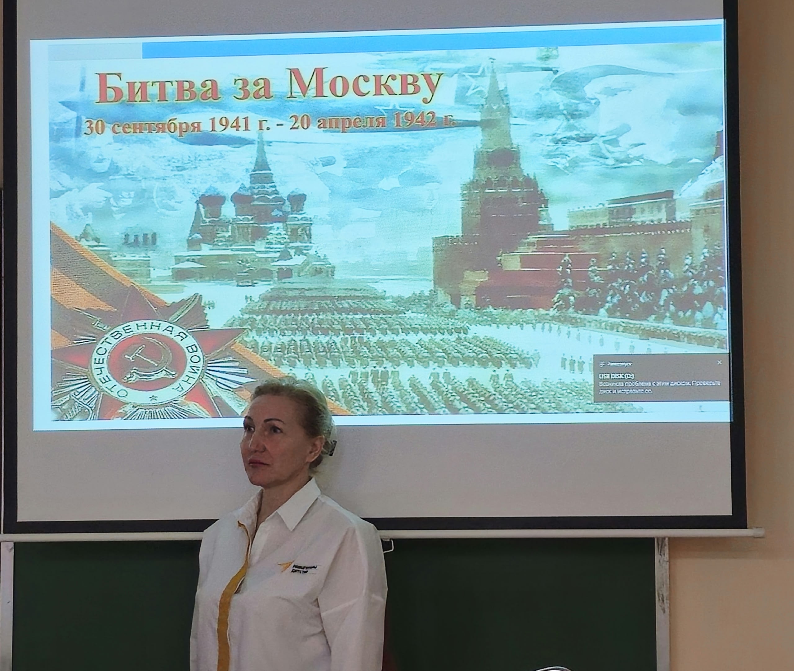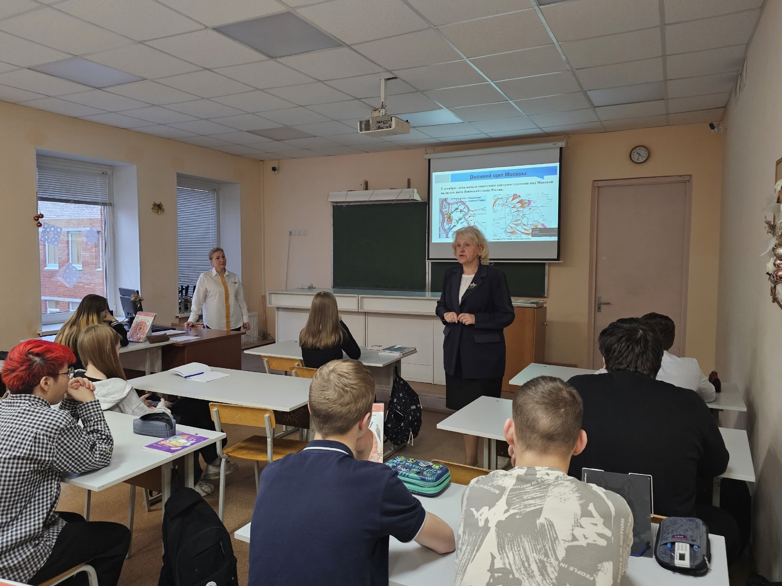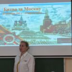 Советник директора по воспитанию Максимова М.В. вместе с учителем истории Фабриковой И.В. провели тематический урок, посвящённый памятной дате. На занятии обучающиеся 8 класса познакомились с историей, организацией, командующими битвой, с подвигами советских людей, героически защищавших столицу Родины.