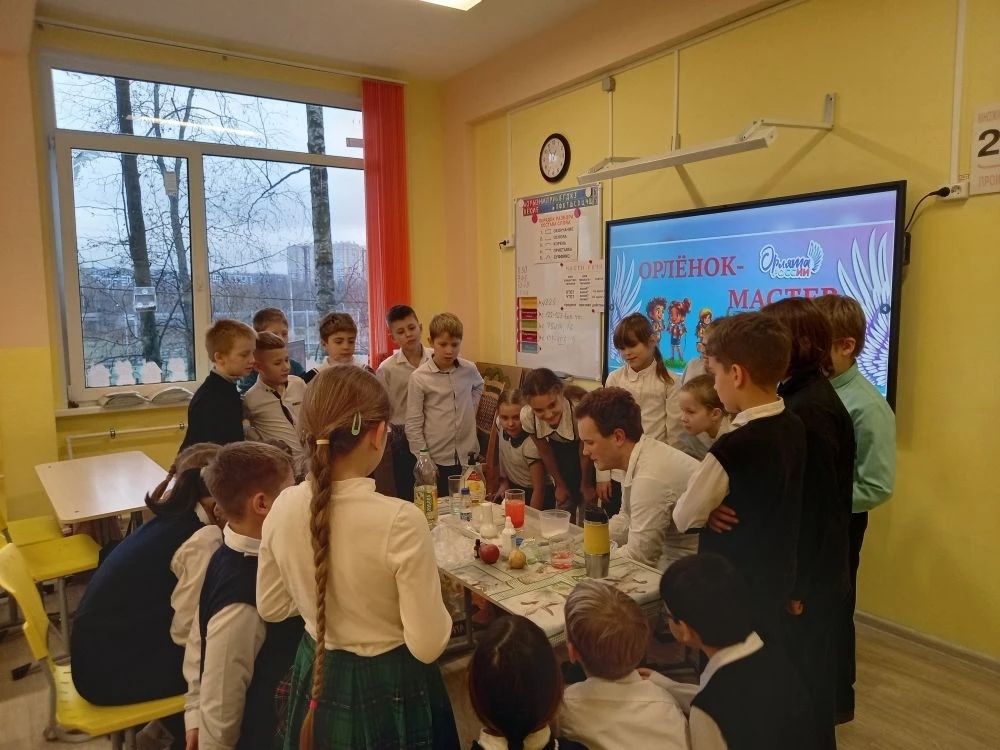В рамках трека «Орленок-Мастер» юные Орлята 3 «Б» класса и их классный руководитель Домасевич Т.А. встретились с молодым и талантливым химиком Александром Андреевичем Мурашёвым — настоящим волшебником. Но его магия — это не фокусы, а удивительные открытия и увлекательные опыты!