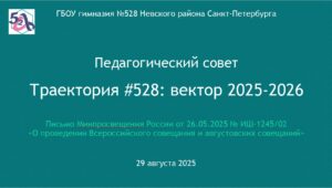 Педагогический совет планирует в рамках реализации стратегии развития системы образования Санкт-Петербурга определить и принять к исполнению в 2025-2026 учебном году следующие задачи:
