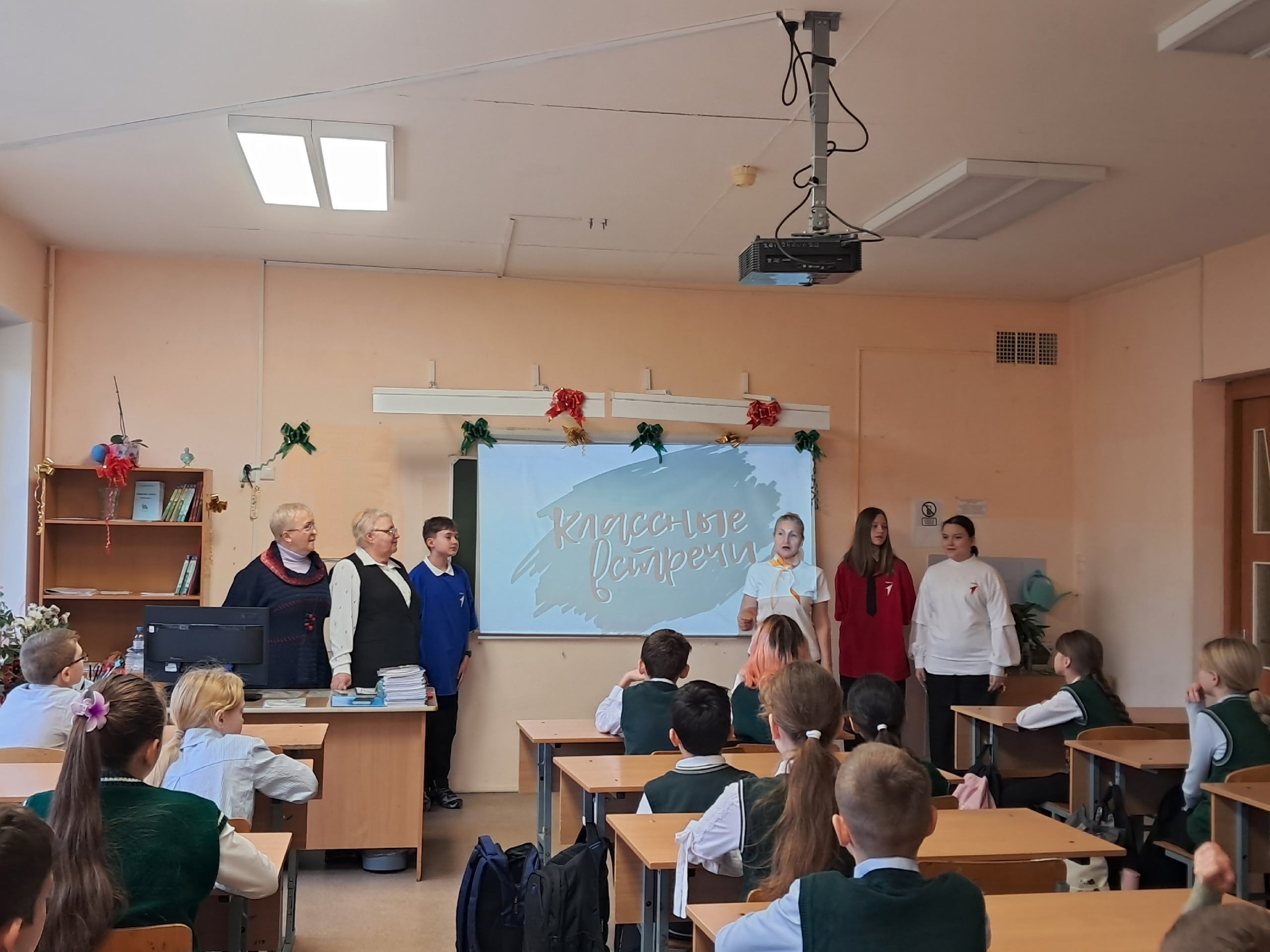 23 октября 2025 года, в преддверии Международного дня школьных библиотек, который отмечается во многих странах в четвёртый понедельник октября, активисты «Движения Первых» вместе с советником директора по воспитанию Максимовой М.В., заведующим школьной библиотекой Старчиковой Т.В. и обучающимися 5 класса приняли участие во Всероссийском проекте «Классные встречи».