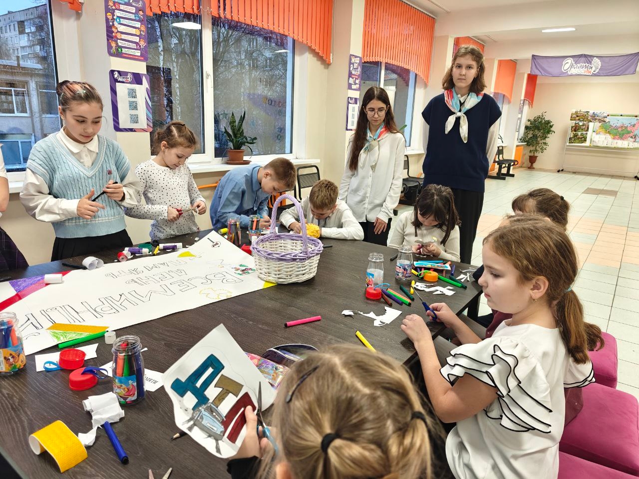 Сегодня, 13 ноября, в нашей гимназии старшеклассники – наставники проекта социальной активности «Орлята России» со своими подшефными- учениками начальной школы, участники детского общественного объединения «ЮИД» под руководством советника директора по воспитанию Максимовой М.В. и куратора ДОО Маланичевой М.А. стали участниками акции, в результате которой появился информационный плакат, на котором обращается внимание о необходимости и важности соблюдать правила дорожного движения. Плакат размещен в Центре детских инициатив 2 корпуса гимназии.