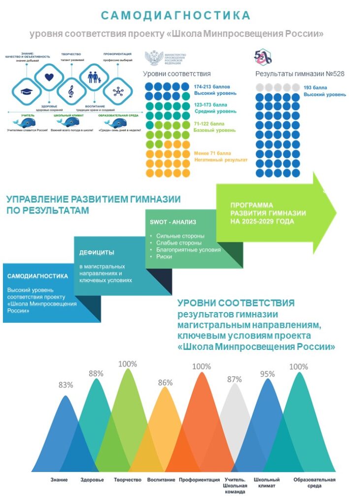 Основная задача самодиагностики — выявление дефицитов показателей соответствия уровню модели «Школы Минпросвещения России» и разработка комплексных мероприятий, направленных на ликвидацию этих дефицитов и повышение уровня.