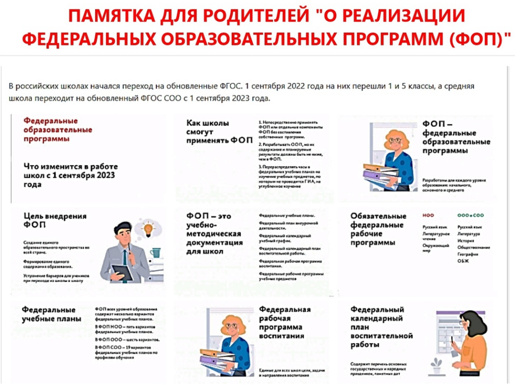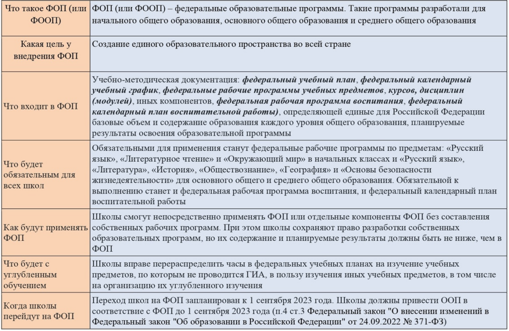 С 2023-2024 учебного года вводятся единые федеральные образовательные программы для 1-11 классов всех школ (11 классы могут продолжить обучение по учебным планам, соответствующим ФГОС СОО до вступления в силу изменений 2022 года).